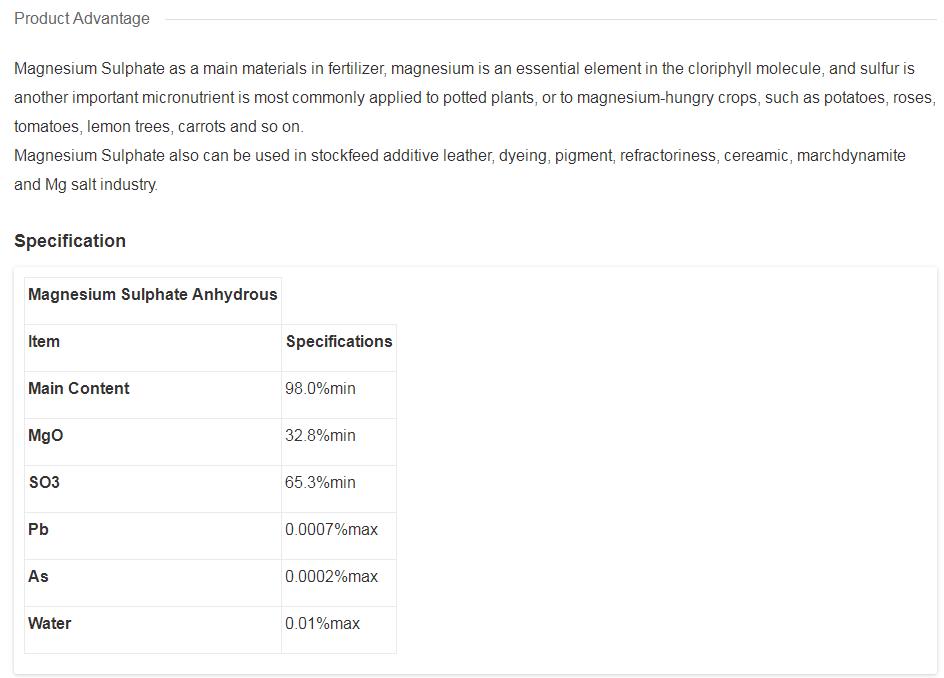 - Product NameMagnesium sulfate Anhydrous