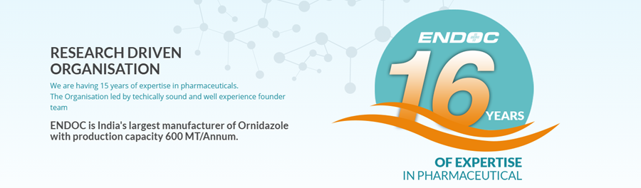 Endoc Lifecare is a well-known and trusted name in the area of Active Pharmaceutical Ingredient (API) manufacturing since 2002. We are one of the best players in Ornidazole - IP/IH, Fluconazole – USP, Fluconazole – IP, Fluconazole – EP and Tizanidine HCL – USP drugs manufacturing.We are manufacturer & exporter of Bulk Drugs. Endoc Pharma established in year 2002 and then converted in to Pvt. Ltd in 2012 with name of Endoc Lifecare Pvt. Ltd. Now companys facility is approved by GMP. and we have also ISO 9001 certification since 2005. A team of professionals comprising of Doctorates, post Graduates Chemical Engineers and chemist who are technically skilled and experience backs it Our company has started commercial production in year 2003 and has so far produce all the batches with a Zero rejection as of now, our production capacity for Ornidazole is 600MT/Yr. We are largest manufacturer of Ornidazole in India.We are maintaining In-house tight s...