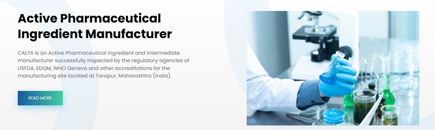 CALYX is an Active Pharmaceuticalingredient and Intermediate manufacturer successfully inspected by the regulatory agencies of USFDA, EDQM, WHO Geneva and other accreditations for the manufacturing site located at Tarapur, Maharashtra (India).The company provides an environment which is conducive and transparent in all its business dealings with external stakeholders.As a company with a strong sense of values and commitments, Calyx believes that profitability must go hand in hand with a sense of responsibility towards team members, stakeholders and most importantly the society.To have a leadership position as Manufacturers of API in the Select Molecule Category and be a partner of choice for CRAMS business in the global pharmaceutical market.