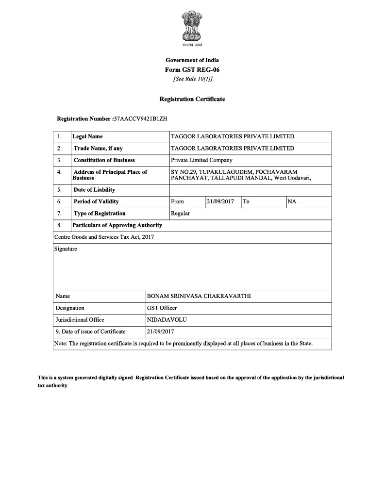 | TAGOOR LABORATORIES PVT LTD | |