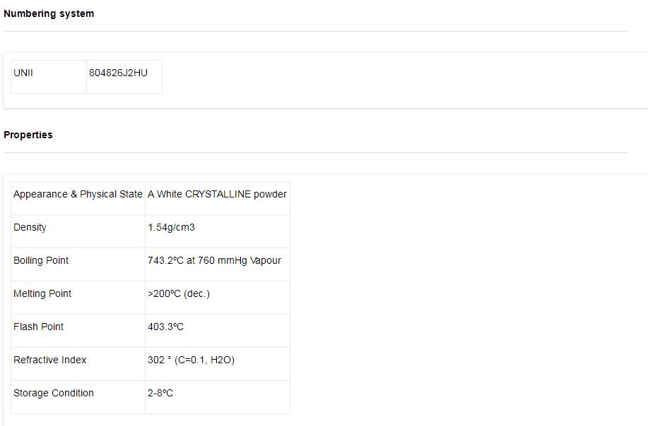 - Melting point >200°C (dec.)