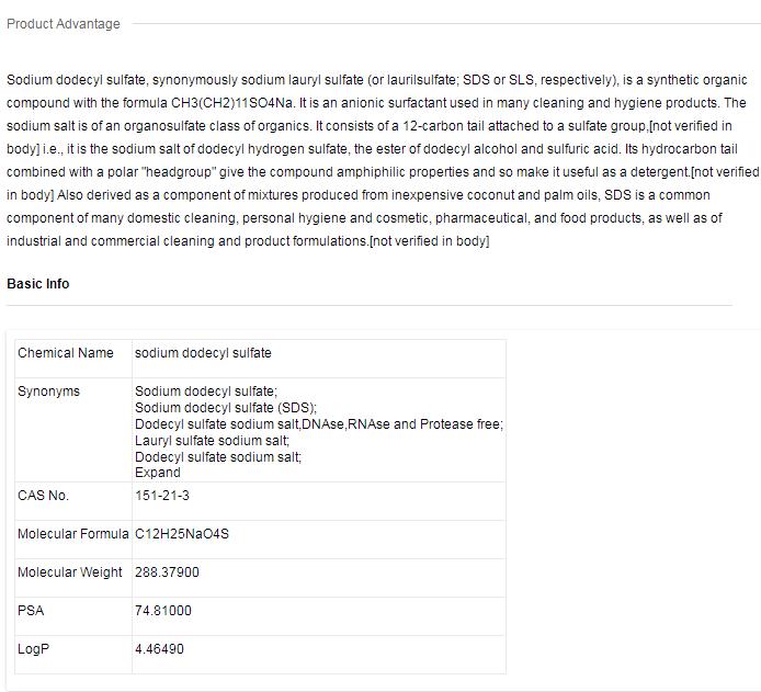 - Sodium Lauryl Sulfate Mol Bio and Electrophoresis Grade ,cas no-151-21-3