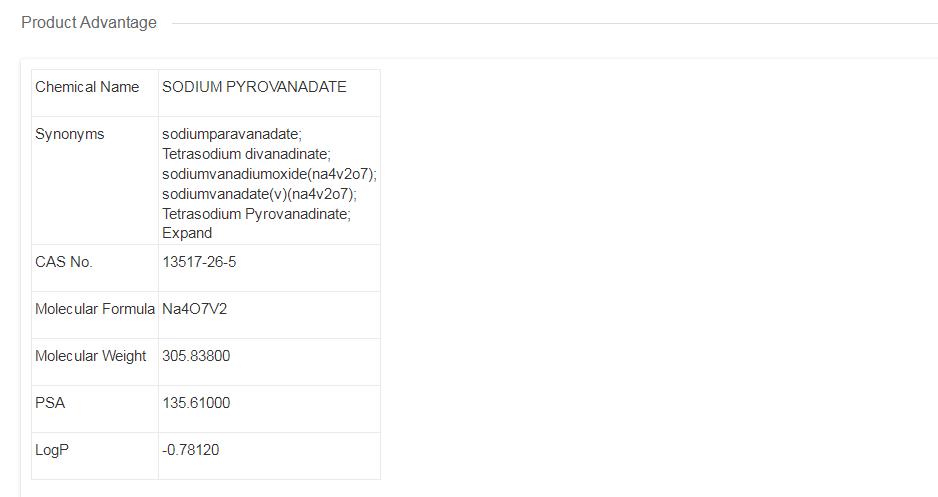 - Product NameSODIUM PYROVANADATE