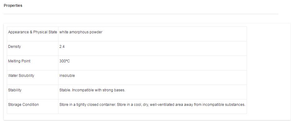 - density 2.42 g/cm3 at 20 °C