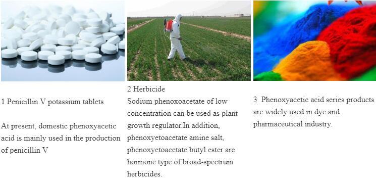 Phenoxyacetic acid is an important chemical raw material, which can be used to produce penicillin V, herbicide, dye, insecticide, fungicide, plant hormone and intermediate of central neurostimulant.