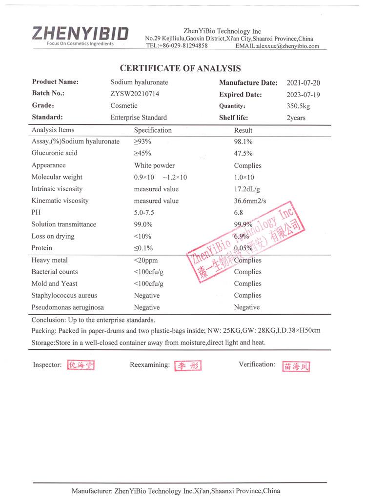 ZHENYIBIO TECHNOLOGY INC is a high-tech enterprise dedicated to natural plant active cosmetic raw materials.ZhenYiBio Technology Inc was established in 2008 and located in the Free Trade Area of Xi'an High-tech Industrial Development Zone.90% more of the employees have a bachelor degree or above and we had been the members of the Shaanxi Province Plant Extract Industry Association. Zhenyi Biotechnology focuses on the research and development,production and solutions of cosmetic raw materials such as glutathione, hyaluronic acid, polyglutamic acid, asiaticoside, peptides and liposomes.We,Zhenyi Biotechnology,have been in the field of cosmetic raw materials for 13 years and has authority R&D team,professional raw material planting base and GMP standard factory,from planting,raw materials to finished cosmetic products,to meet the different needs of different customers for products. Zhenyi Biotechnology is a market-oriented company and we are striving to optimize product structure and customer needs.Our products are widely sold in more than 50 countries around the world such as Asia,Europe,and the Americas.And we have established a long-term stable cooperative relationship with distributors,end customers and scientific research institutions in hundreds of regions.Which has laid a solid foundation for our overseas business.It is our core philosophy that reassuring customers,shareholders and comforting employees.Through more than 10 years of development,Zhenyi Biotechnology will put more resources and energy in the field of cosmetic raw materials,and aspire to become the forerunner of China's cosmetic raw materials industry.