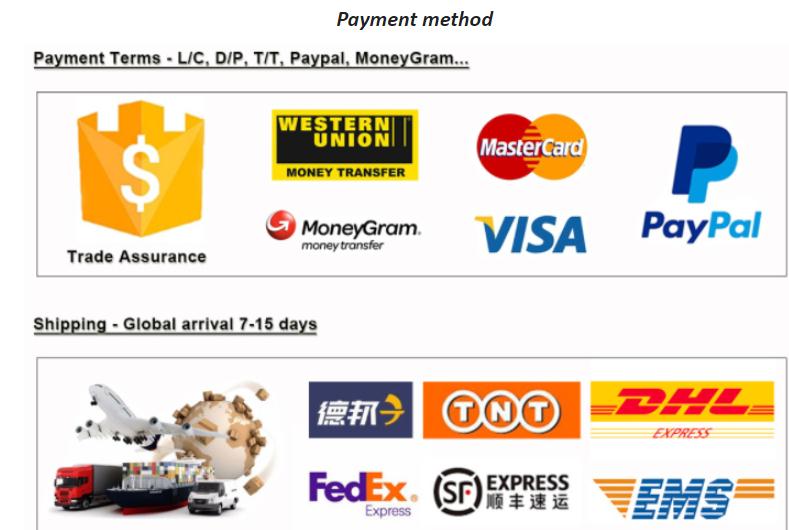 Shipping:Fedex, DHL, EMS,UPS etc. By sea and By air.